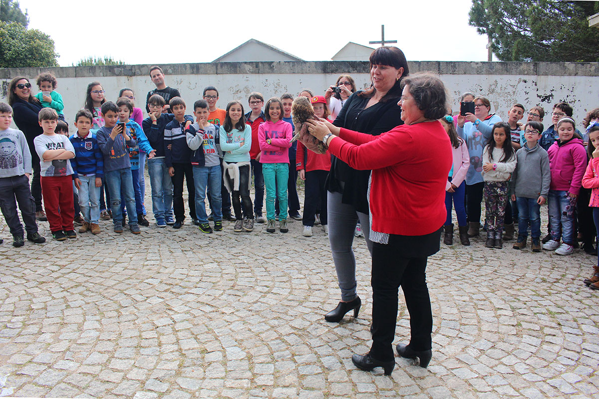 Para além disso, recorrendo ao kit de material biológico do CERVAS, foram apresentadas algumas das espécies existentes na região e as suas principais ameaças, tendo sido dado um particular destaque ao grupo das aves de rapina nocturnas.