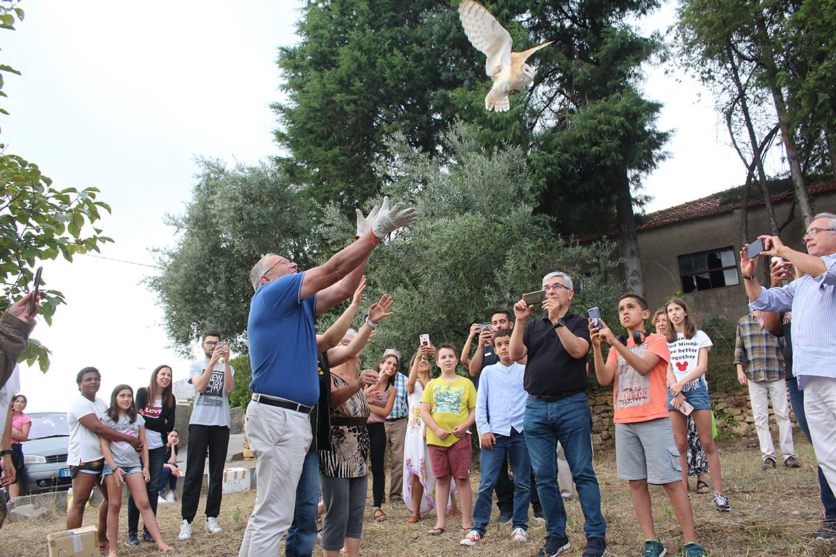De seguida foi realizada uma saída de campo para observação e identificação de animais nocturnos, que começou com a devolução à Natureza de um mocho-galego (Athene noctua) que tinha estado em recuperação no CERVAS.