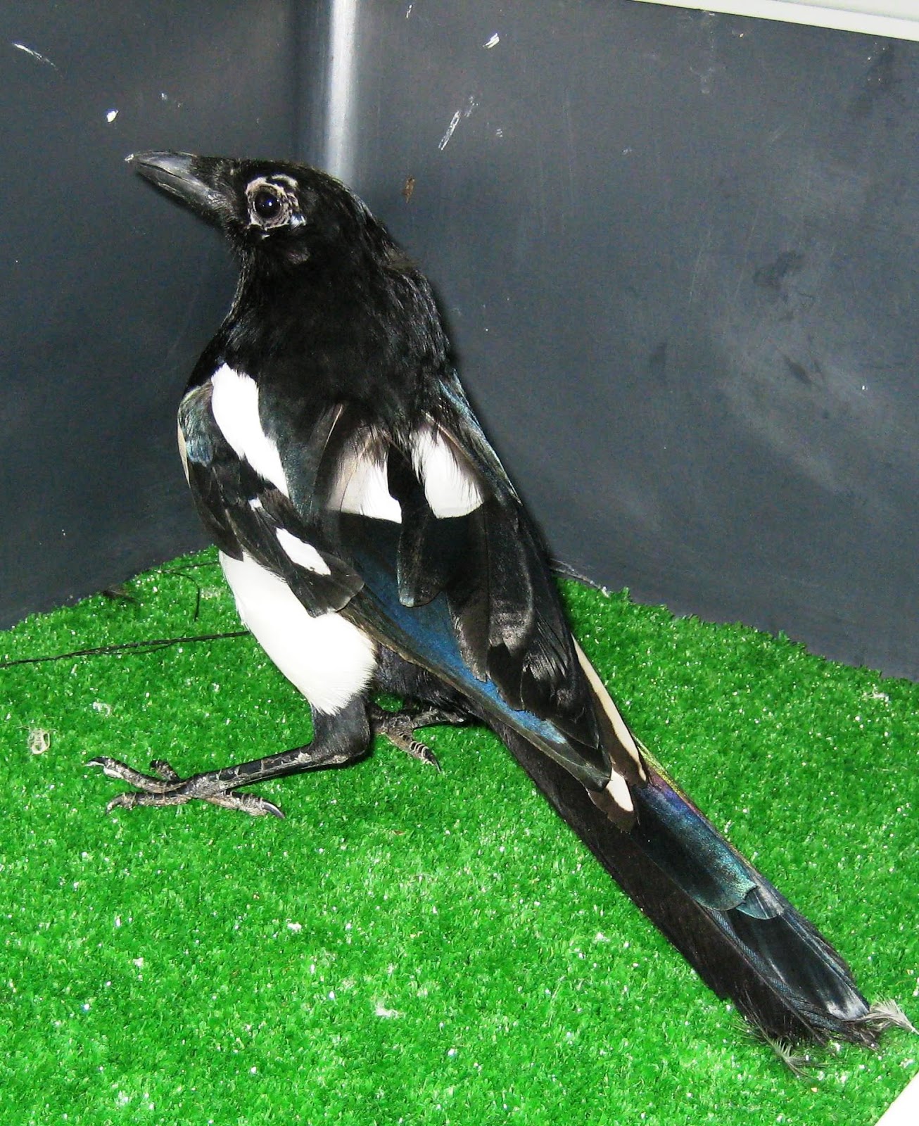 Esta ave tinha sido encontrada dentro da lareira de uma habitação após ter caído pela chaminé e encontrava-se em estado de grande debilidade e magreza, e apresentava a plumagem muito suja.