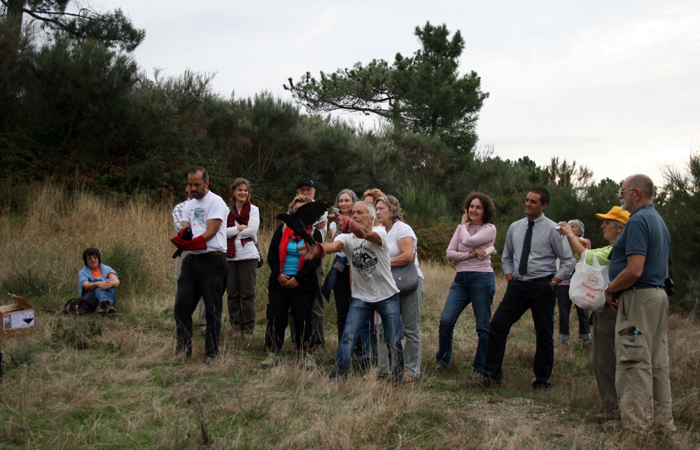 De seguida, às 14:30 foi reunido um grupo de pessoas interessadas em assistir à devolução à Natureza de dois açores que tinham sido recuperados no CERVAS.